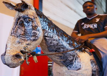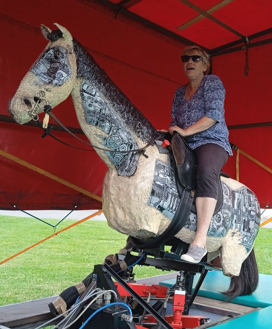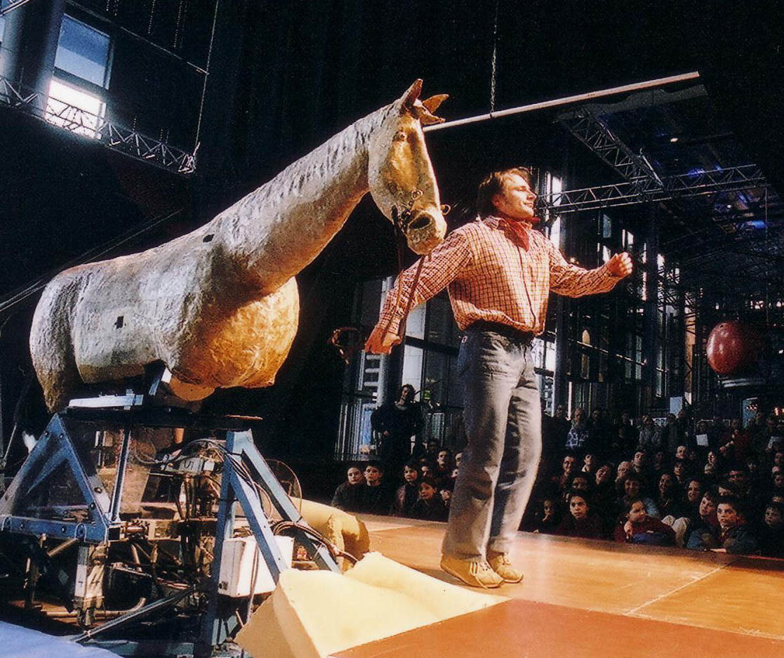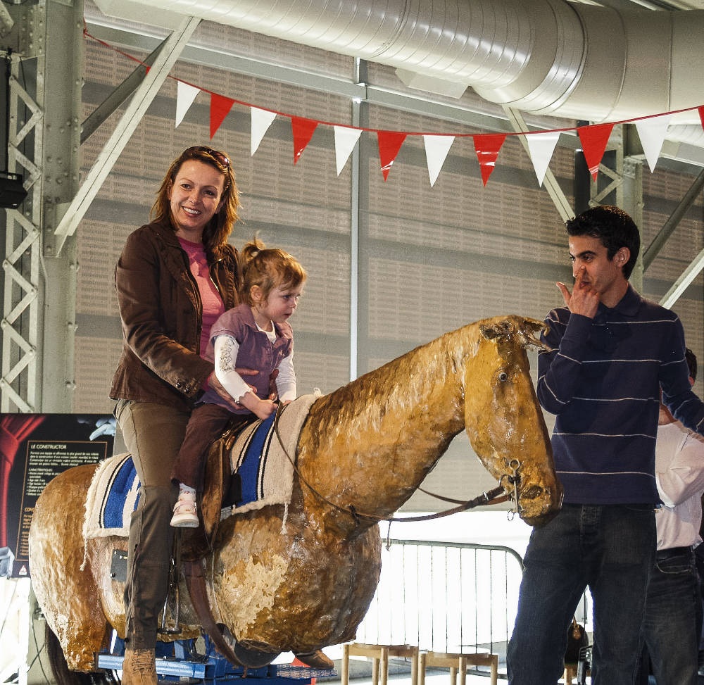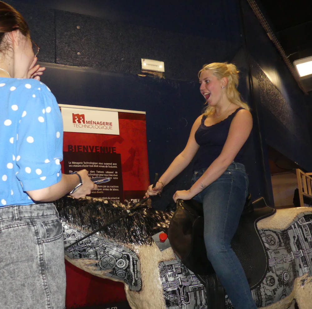 Un ancien ouvrier de l’automobile pour monter des portières devenu chevalCe robot-automate actionné par six vérins hydrauliques et déguisé en cheval vous invite à le monter pour une expérience inoubliable de cavalcade mouvementée. Accrochez-vous !Apprivoisez-le et profitez de ce moment de rire et de plaisir à partager avec ce partenaire, fan de western.