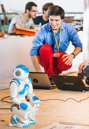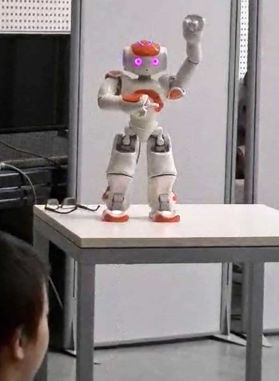 Il a des bras, des jambes, il parle, il bouge !!!C’est NAO, le robot humanoïde préféré de tous.Approchez, il saura vous guider là où vous voulez aller.Ou préférez-vous une petite danse ? - Ce robot, selon l’endroit où il exposé, peut avoir une application d’accueil.- Il a aussi des possibilités d’applications de mouvement dansé avec musique.- Il est également proposé comme support d’échange avec le public sur le thème de l’IA.