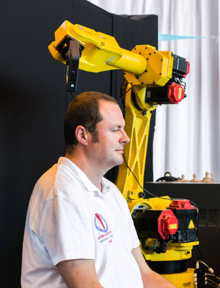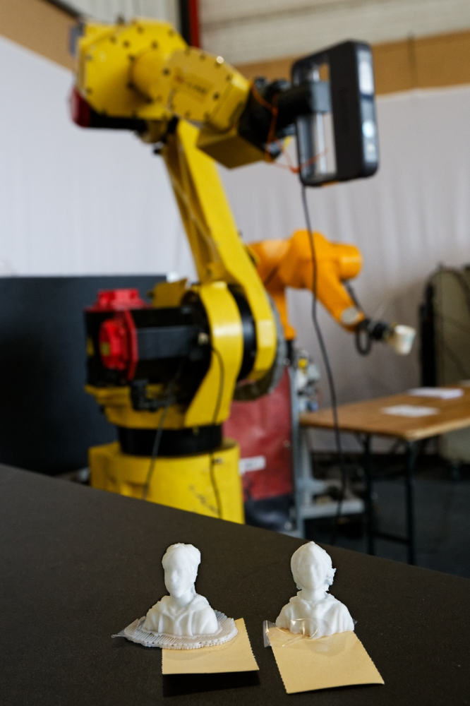 Un ancien ouvrier dans une entreprise de fabrication de lunettes, devenu un artiste des temps modernesAsseyez vous, il vous attend, infatigable, prêt à vous scrutez le visage de tous les cotés.Ayez confiance, cela ne dure qu’1 minute, une imprimante va prendre le relais pour imprimer votre visage en 3D, une statuette vous sera remise. Alors comment vous trouvez vous ?