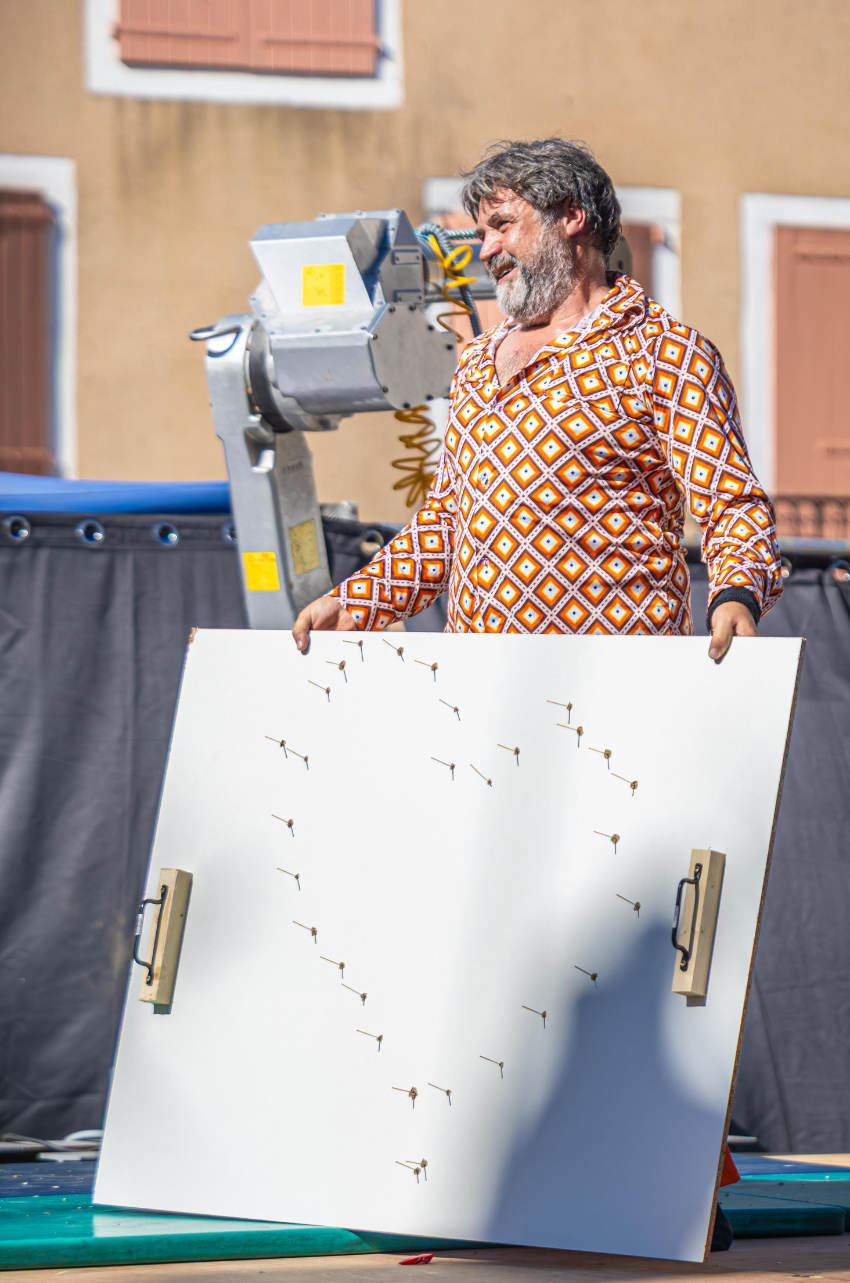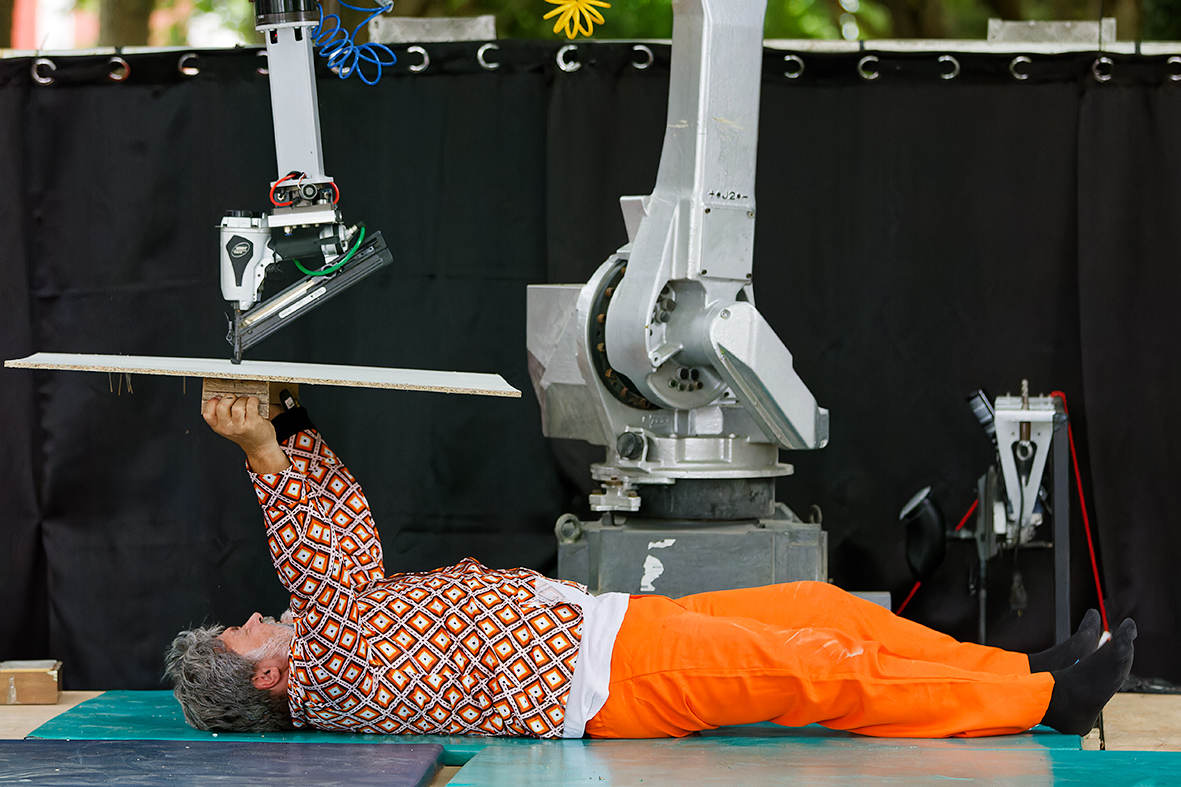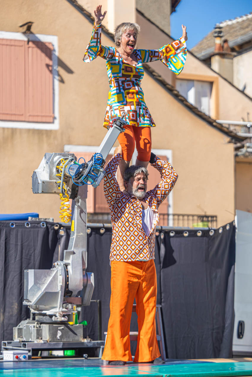 Sur une scène nomade, faite d’un camion, d’une remorque et d’une caravane, s’élève un théâtre forain à la croisée des arts : danse, acrobatie et technologie.Deux comédiens vieillissants — Rita, rêveuse, star mélancolique, amoureuse de son propre corps, et Marco, ex-acrobate glorieux des années 70 — partagent la piste avec un troisième protagoniste inattendu : un robot industriel, réchappé des chaînes de montage.Ce dernier, monumental et sensible, se déploie, s’anime, se fait partenaire de jeu, de danse, d’émotion. Il construit la scène, en devient le cœur, l’ami fidèle, presque humain.Il enchaîne les exploits mécaniques avec une précision troublante, jusqu’à se transformer en miroir de nos limites et de nos désirs.Entre poésie, nostalgie et vertige technologique, ce spectacle hybride interroge nos récits intimes, nos corps qui fatiguent, et cette étrange tendresse qu’on peut ressentir pour une machine.