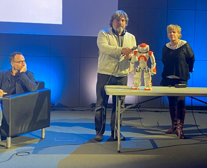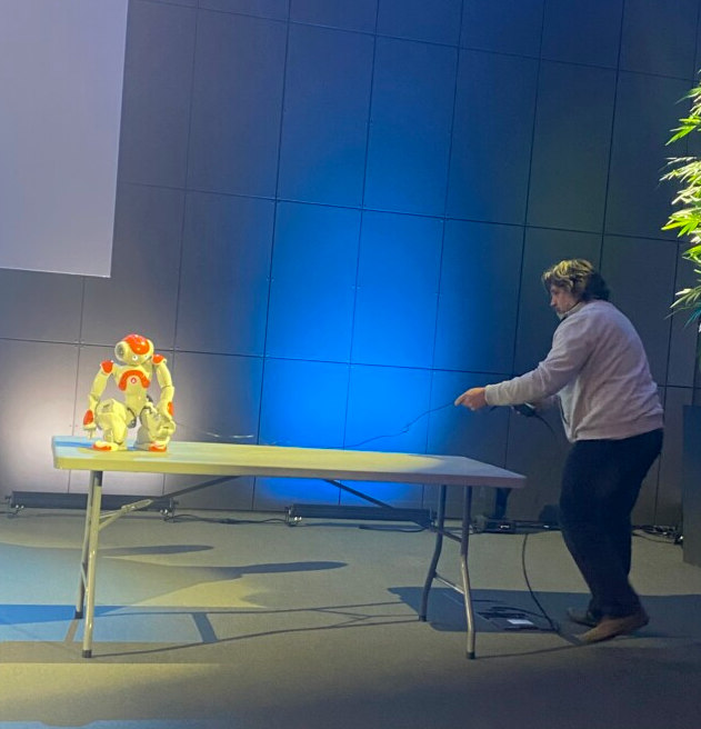 Sophie et Bertrand ont clos ces démonstrations avec la présentation ludique du robot NAO qu’ils proposent dans leur médiation pour échanger sur l’IA ; un grand moment très récréatif où NAO a su faire rire l’assemblée !!